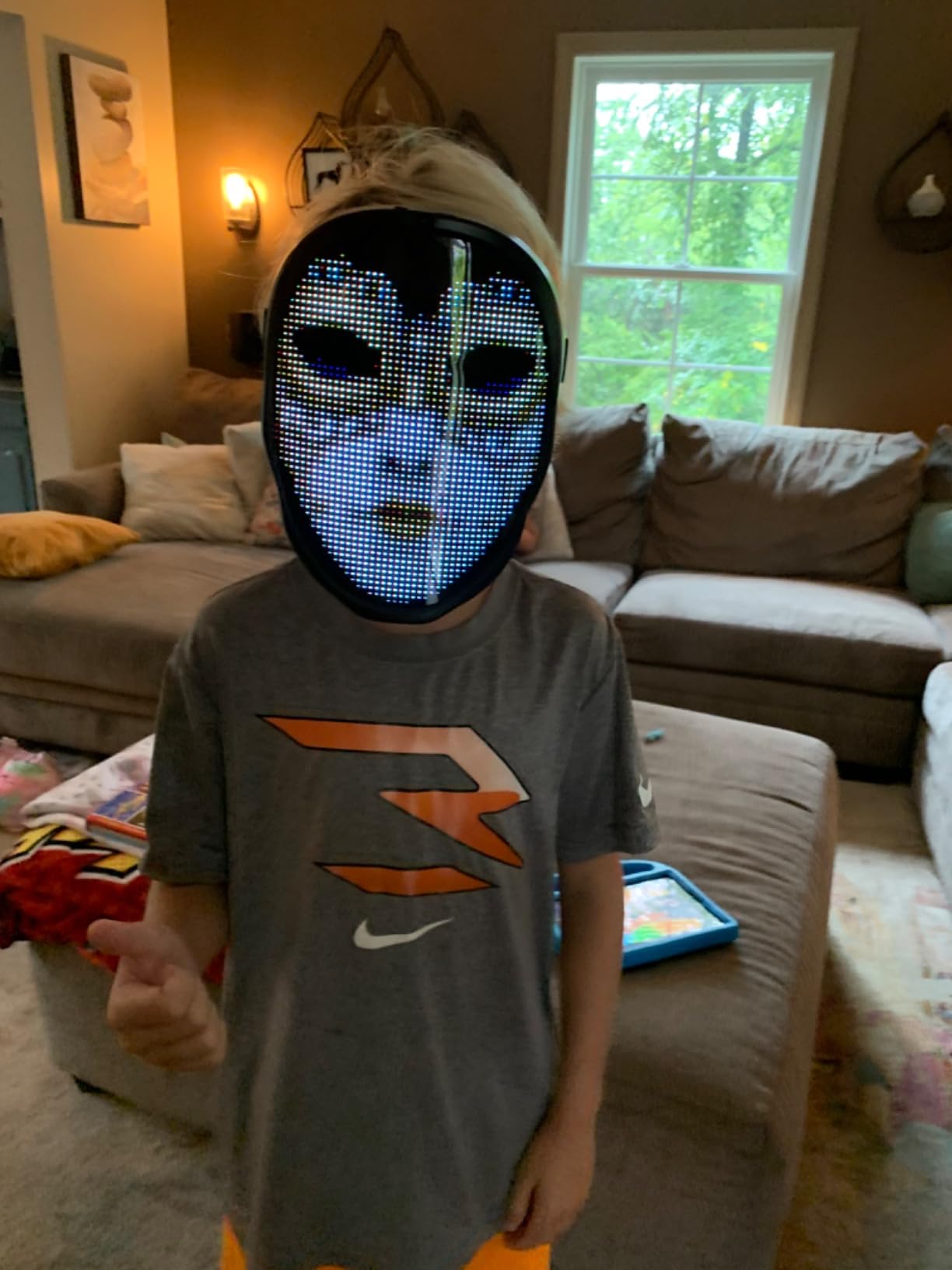 “My son begged for this mask for Halloween, and it did not disappoint! The designs are amazing, and he had the coolest costume at his school parade. The fact that we can upload our own pictures makes it even better. Totally worth it for the smiles alone.”